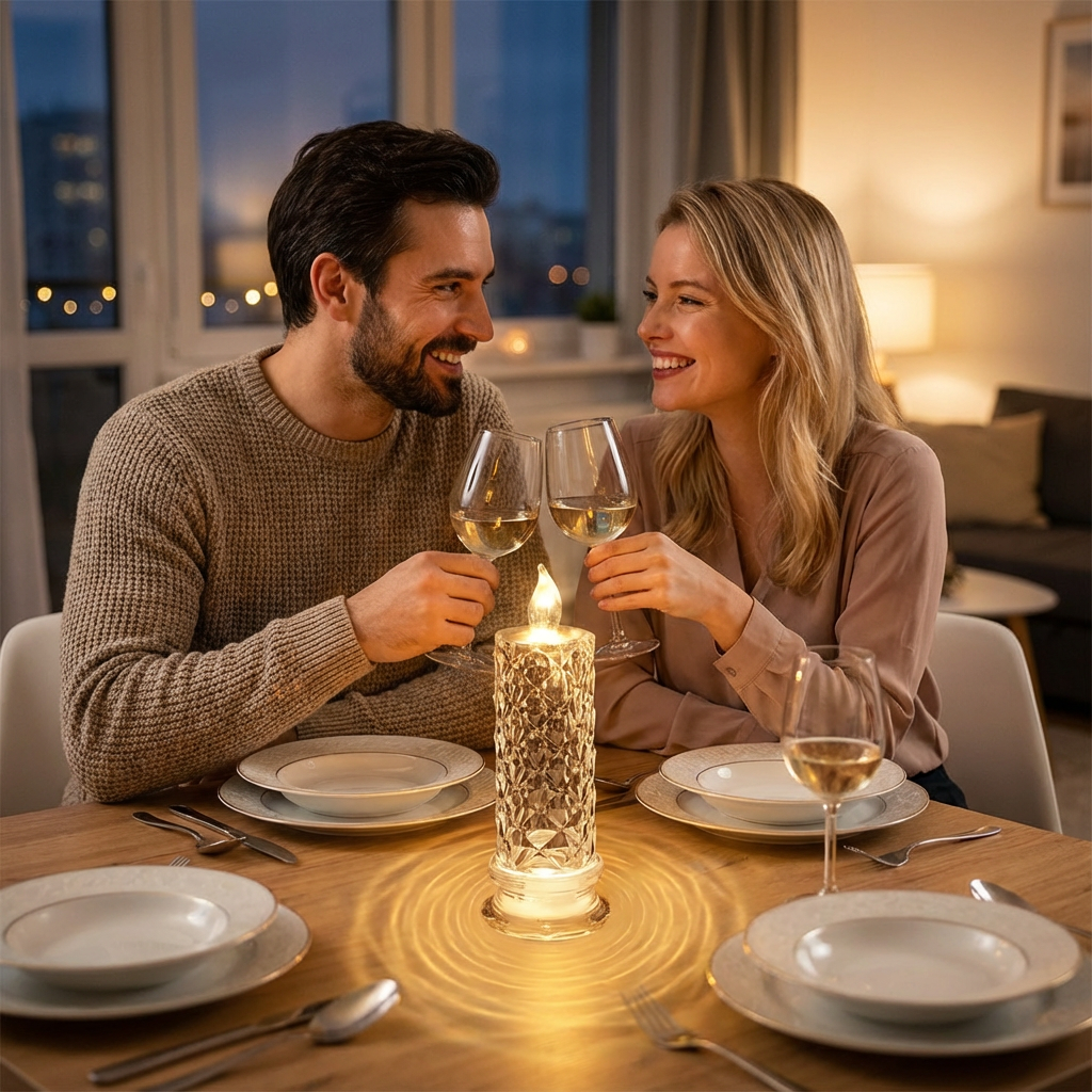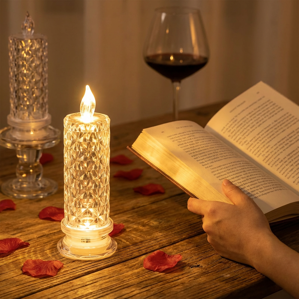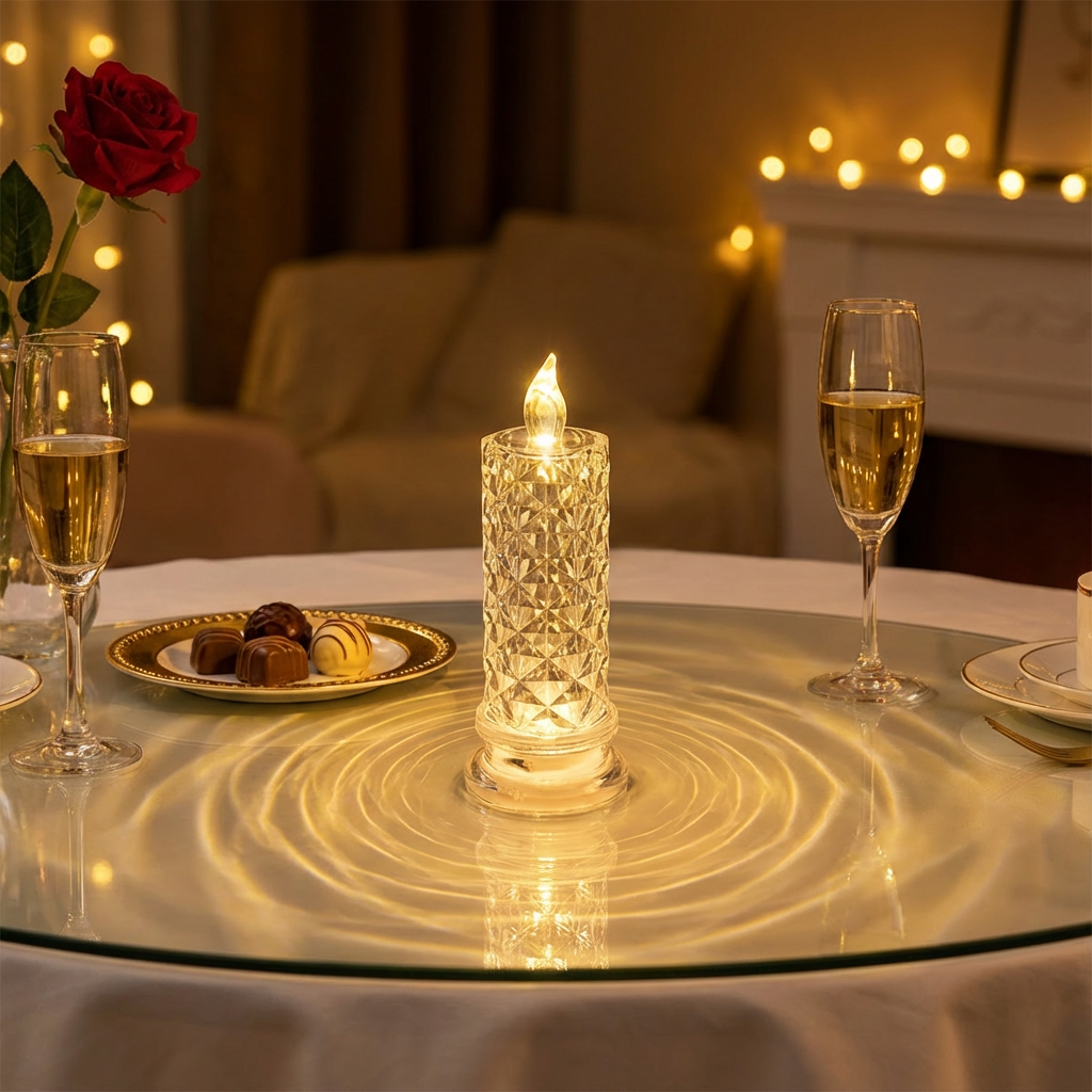 Ledowe kryształowe światło świecy łączy elegancki design z nowoczesną technologią i wnosi do Twojego domu ciepły, połyskujący blask. Niezależnie od tego, czy ustawisz je na stole jadalnym, w salonie czy jako stylową dekorację na specjalne okazje, to światło natychmiast tworzy luksusowy i przytulny nastrój, całkowicie bez otwartego ognia.