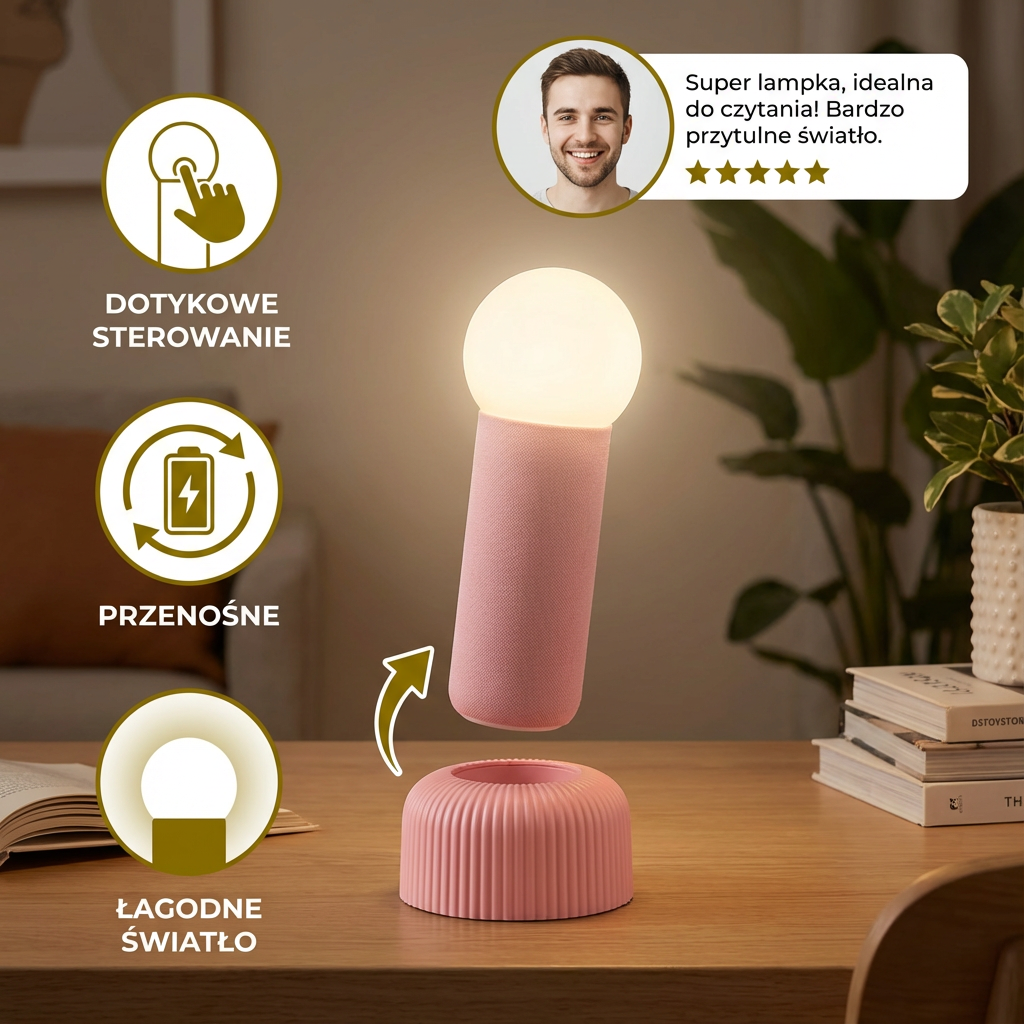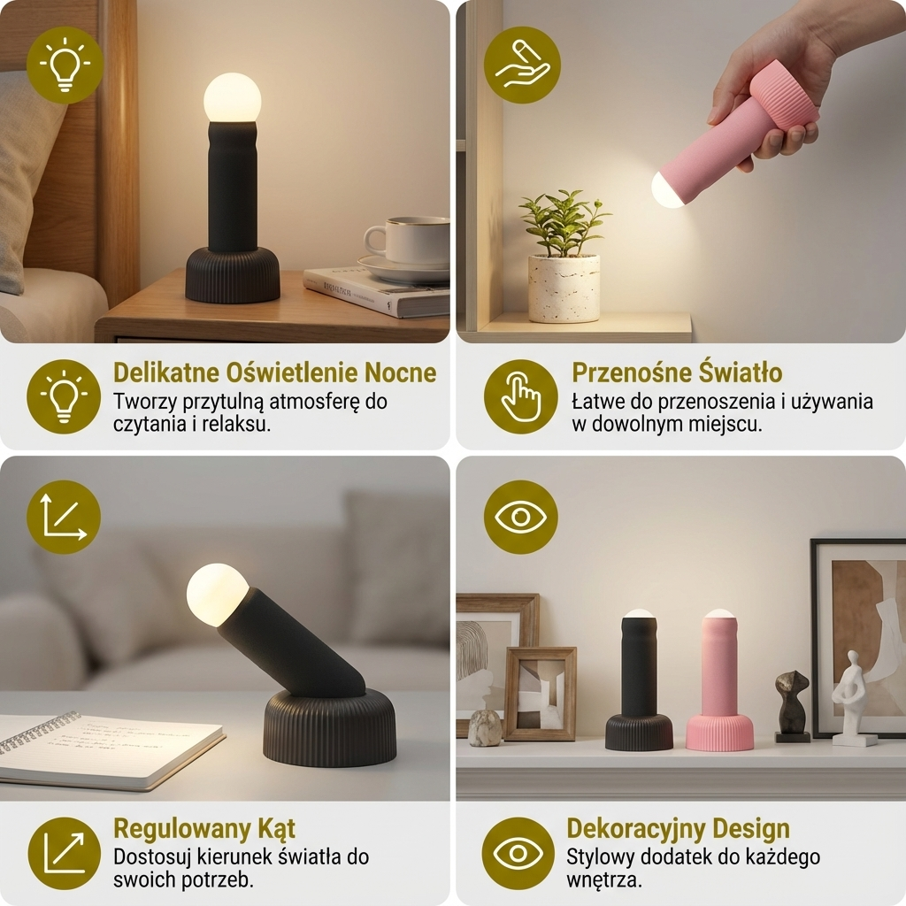 - 💡 Łagodne, nieoślepiające światło: Tworzy przyjemną atmosferę, idealną do pracy, czytania lub relaksu.