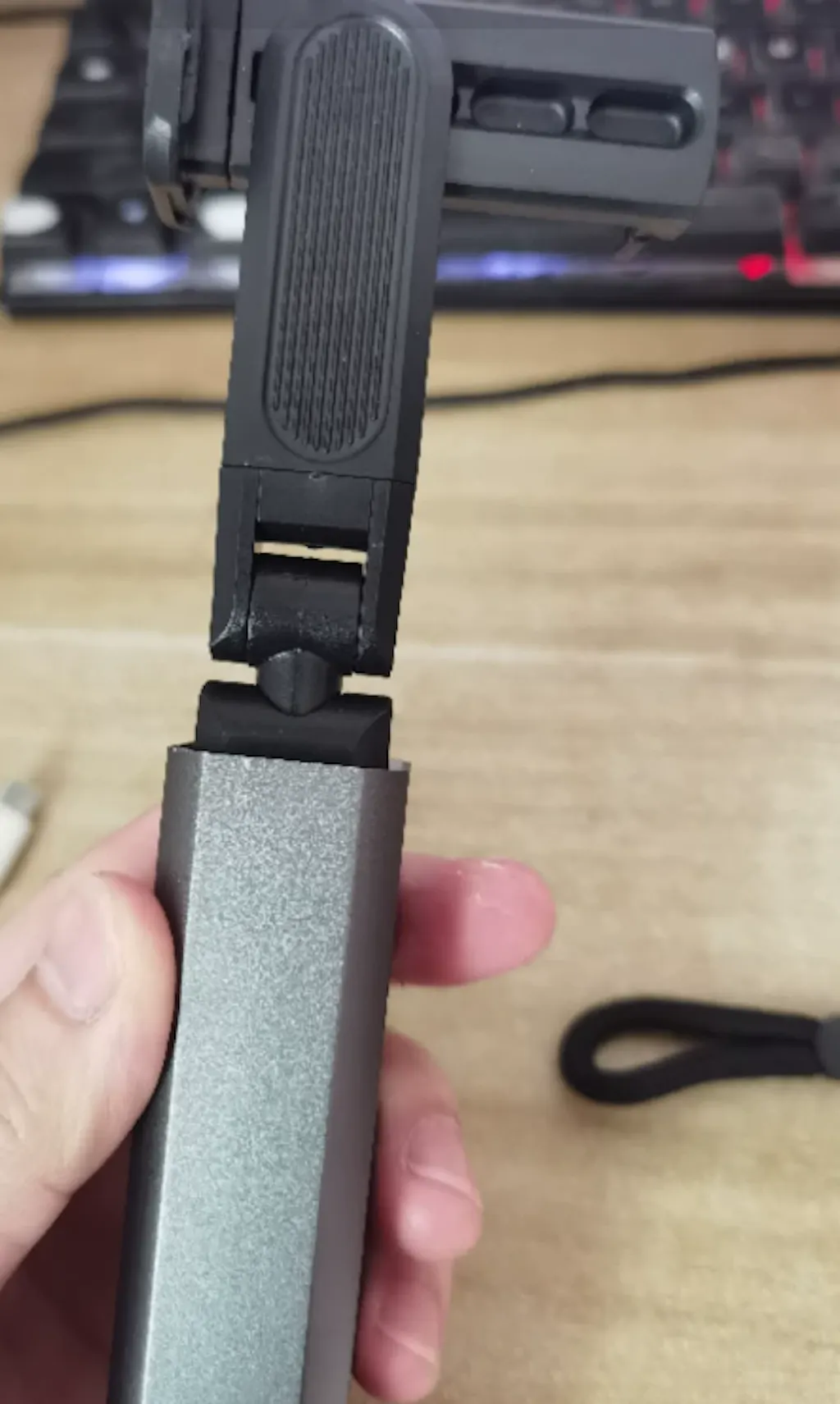 Bardzo praktyczny uchwyt, który stabilnie utrzymuje telefon w każdej pozycji. Regulacja kąta działa płynnie i bez problemów.